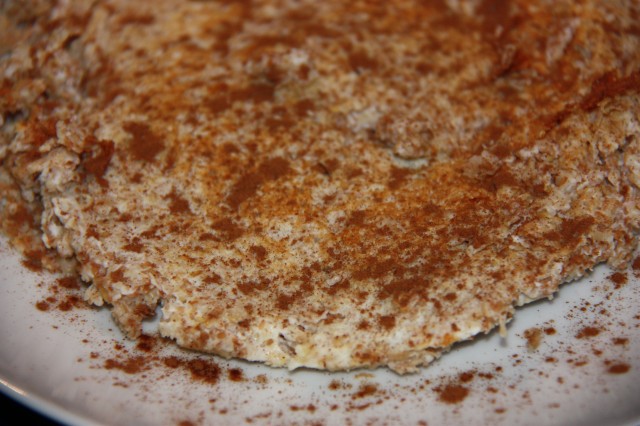 Mezclamos todos los ingredientes en un bol (menos la canela) y lo ponemos racionado en una satén antiadherente de las que se puede cocinar sin grasa, si es necesario mojamos un poco con papel de cocina y aceite para que no se pegue.Echamos raciones y hacemos las tortitas.